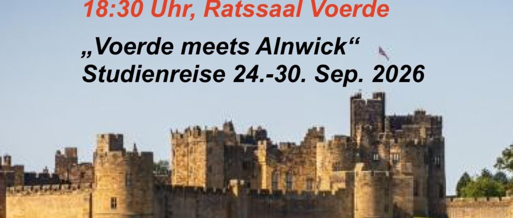 Die vom Heimatverein Voerde und der Auslandsgesellschaft Dortmund e.V. geplante Studienreise (24.-30. Sep. 2026) in unsere Partnerstadt Alnwick/GB wird am 9. Januar 2026 um 18.30 Uhr im großen Sitzungssaal des Rathauses Voerde auf unserer Infoveranstaltung [...]