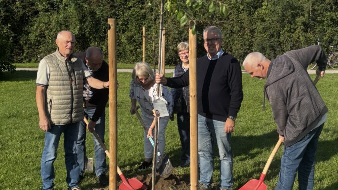 Die Pflanzaktion hat einen besonderen Hintergrund: bei einer Challenge wurde der Heimatverein aufgefordert, einen Baum in Voerde zu pflanzen. Da das Jahr 2025 für den Heimatverein Voerde ein besonderes Jahr ist, wir feiern unser 75-jähriges Bestehen, haben wir dies zum Anlass genommen, den Baum als Jubiläumsbaum in den Voerder Pakulat-Park zu setzen. Er ist eine Nachpflanzung für einen eingegangenen Baum. Deshalb danken wir für unbürokratische Hilfe wir in diesem Zusammenhang den Mitarbeitern der Stadt Voerde, insbesondere Herrn Gerten!