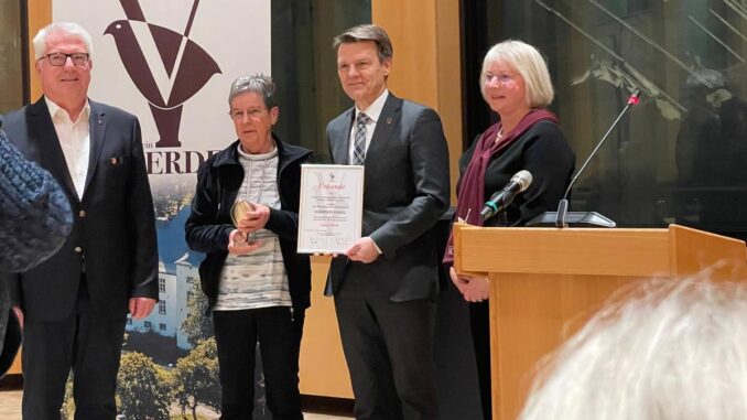 Es ist die erste Verleihung durch den neuen Vereinsvorstand mit Gisela Marzin an der Spitze und Walter Seelig in der Stellvertretung. Es ist zudem noch eine Auszeichnung, die im 75sten Jahr des Vereinsbestehens vergeben wird. Es ist sozusagen eine Jubiläumsausgabe! Ohne dass ich das verlässlich recherchiert habe wage ich darüber hinaus die Behauptung, dass Heinz Boß die erste Person ist, der diese Ehre aller drei Auszeichnungen zuteilwird.